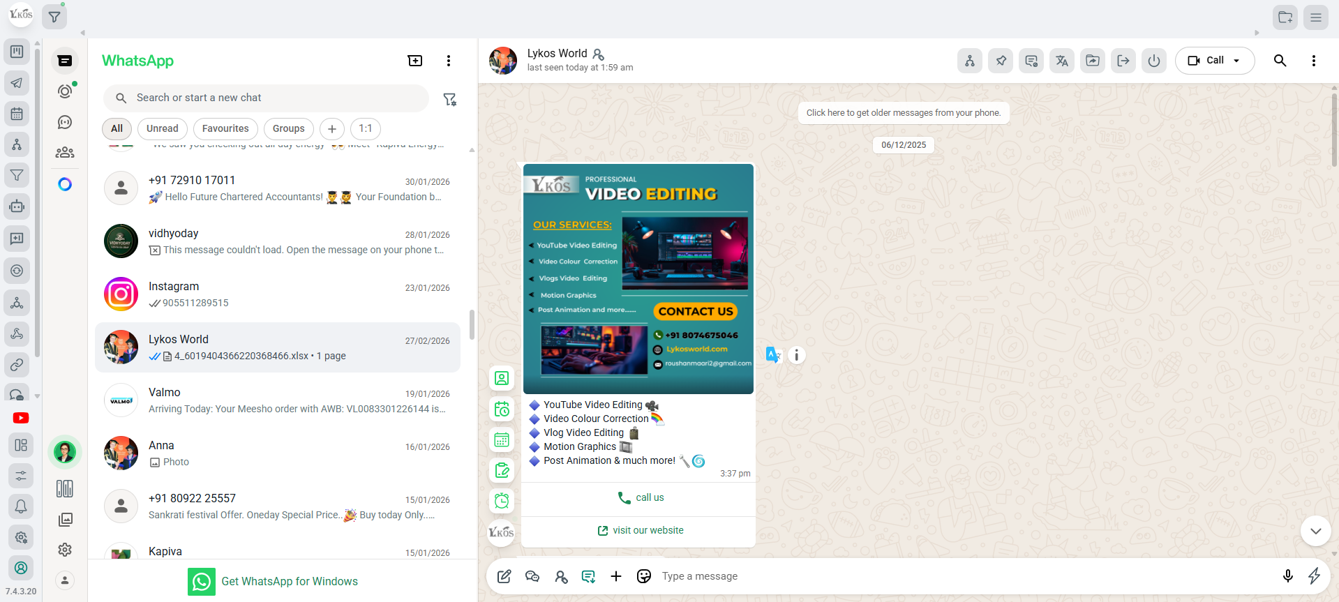 I have been using Lykos World WhatsApp Software for my business and it has completely improved the way I manage my customers. The software is very easy to use and comes with many powerful features like bulk messaging, automation, follow-ups, and contact management